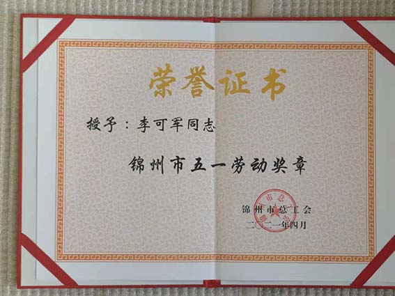 日,李可軍董事長榮獲“錦州市五一勞動獎?wù)隆睒s譽(yù)稱號。