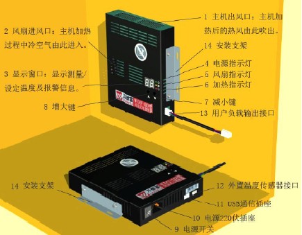③故障監(jiān)測和報(bào)警功能:加熱器可以對內(nèi)部的風(fēng)扇、加熱器、溫度傳感器進(jìn)行自動監(jiān)測,如發(fā)現(xiàn)故障能自動停止工作并告警,提醒用戶檢查處理。